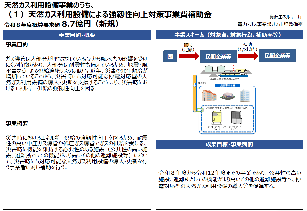 事業費補助金[災害時にも対応可能な天然ガス利用設備]