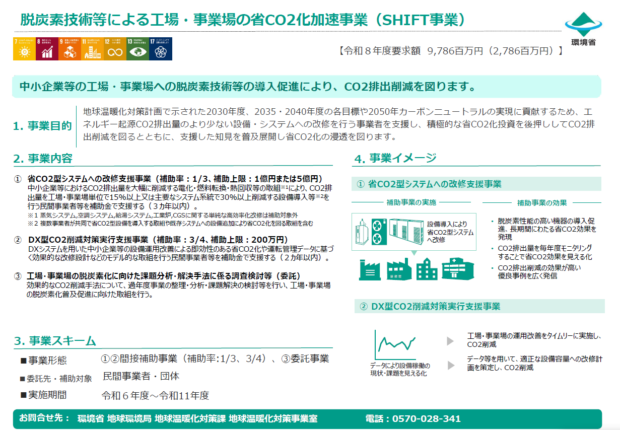 令和7年度脱炭素技術等による工場・事業場の省CO2化加速事業(SHIFT事業)