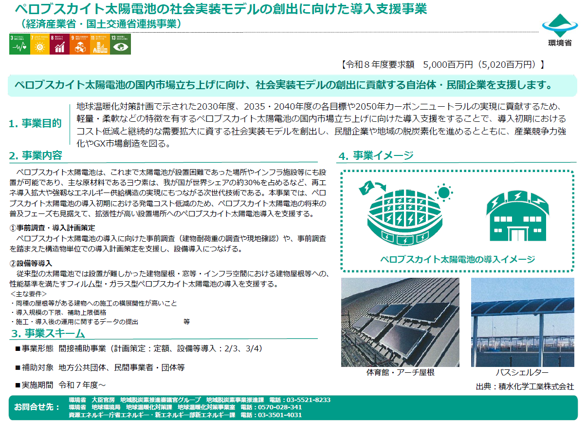 令和7年度ぺロブスカイト太陽電池の社会実装モデルの創出に向けた導入支援